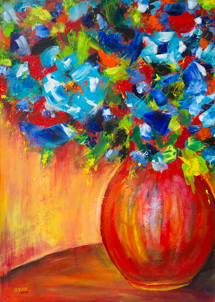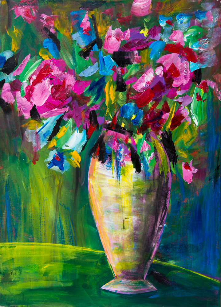 Blumenbouquet I, Acryl auf Canvas-Baumwolle, 70cm x 50cm