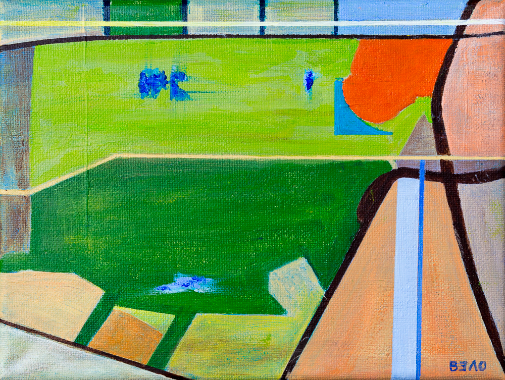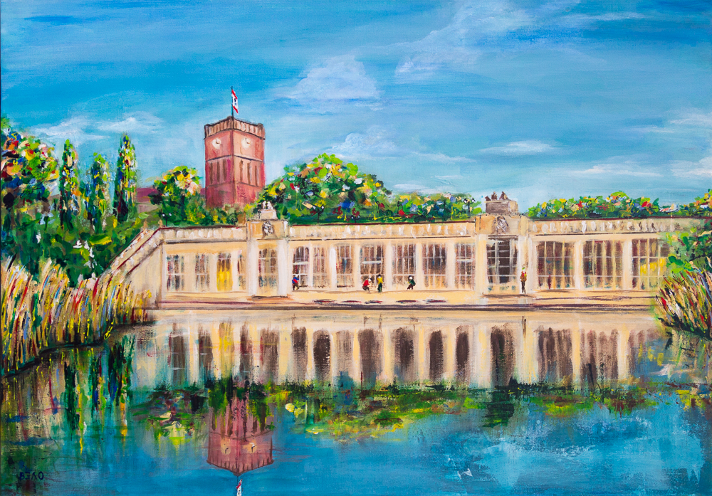 BerlinView III – Rudolph-Wilde Park Rudolph-Wilde Park with a view of the city hall and Carl-Zuckmayer-Bridge with the Underground station Rathaus-Schöneberg (Acrylics – 27,5in x 39,2in)